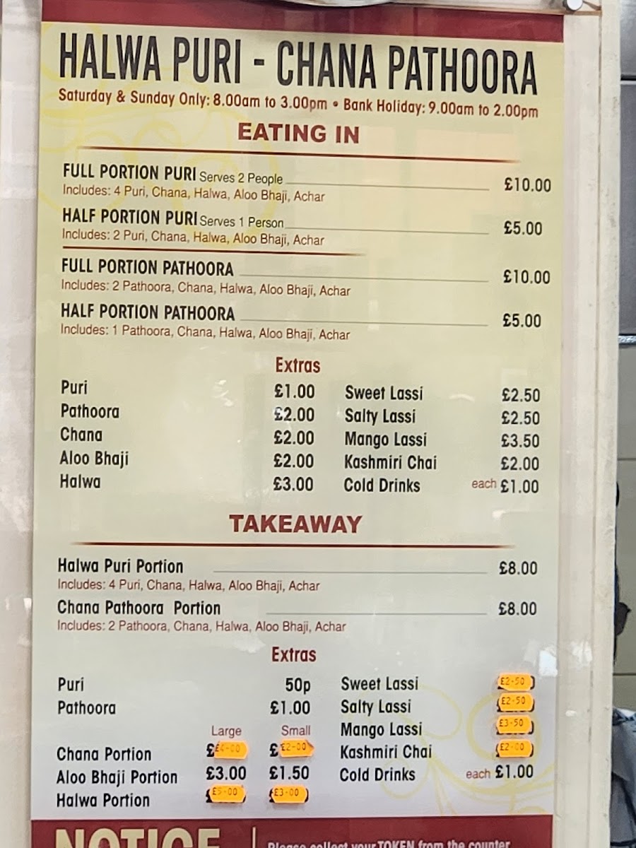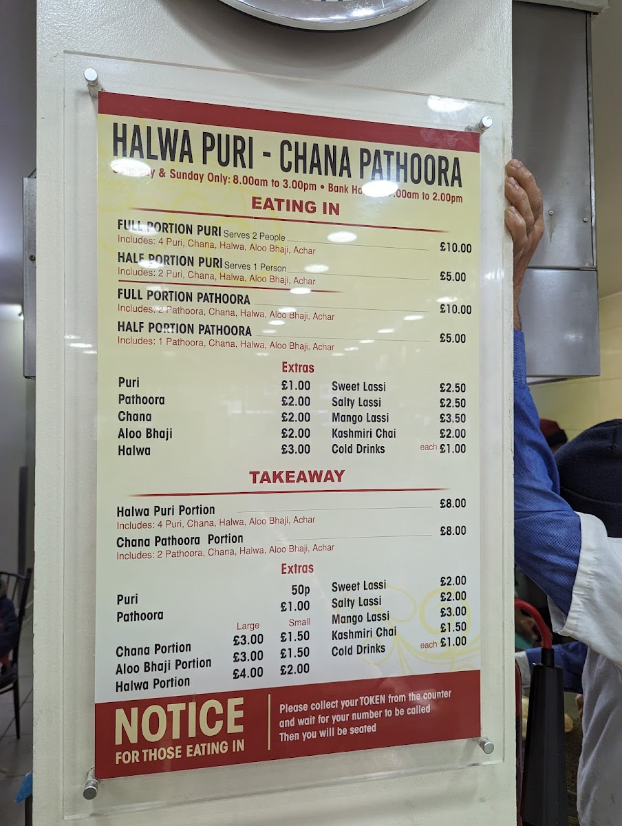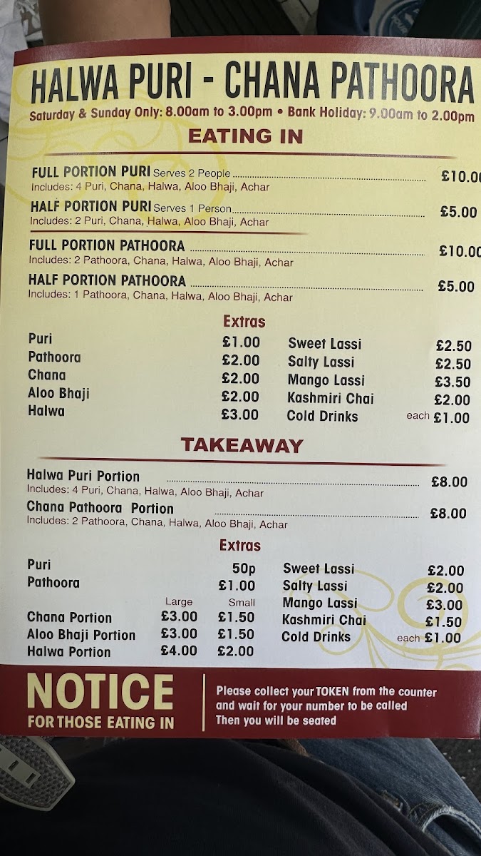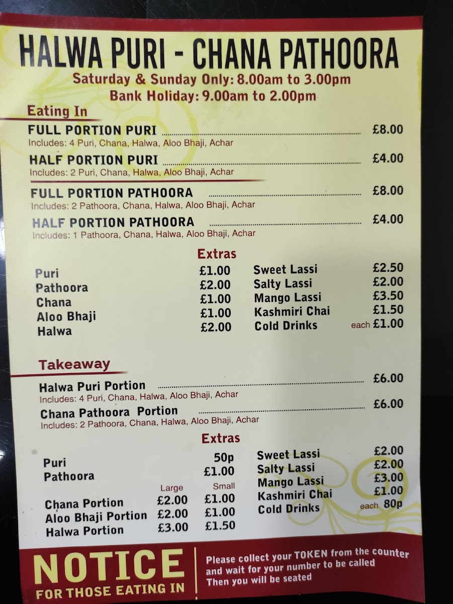 This menu is particularly suited for weekend breakfasts and casual dining, with items like Halwa Puri being popular choices. Customers can expect both quick orders and relaxed meals based on their preference.